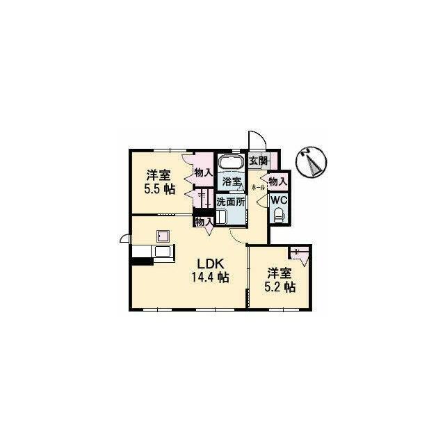 2LDK(LDK14.4帖 洋室5.5帖 洋室5.2帖) |